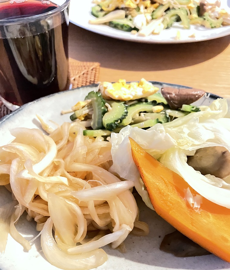 さらにビタミンB1の含有量が多い豚肉の炒め物を少々(下の写真のようにゴーヤーチャンプルとか)。
